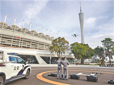 当前,警用无人机正以其高效灵活的技术优势,成为提升执法效能的核心装备之一。“针对十五运会等大型赛事安保的高规格需求,车载双机换电机场抵达任务现场后,可通过预设定时巡航任务,驱动无人机开展全自主飞行巡查。”广州市公安局警航支队民警李志维介绍,指挥部将实时接收无人机回传的高清影像数据,结合机身搭载的双驱喊话警灯一体化设备,实现空中动态警示与地面警力调度的无缝衔接,有效提升重点区域见警率。