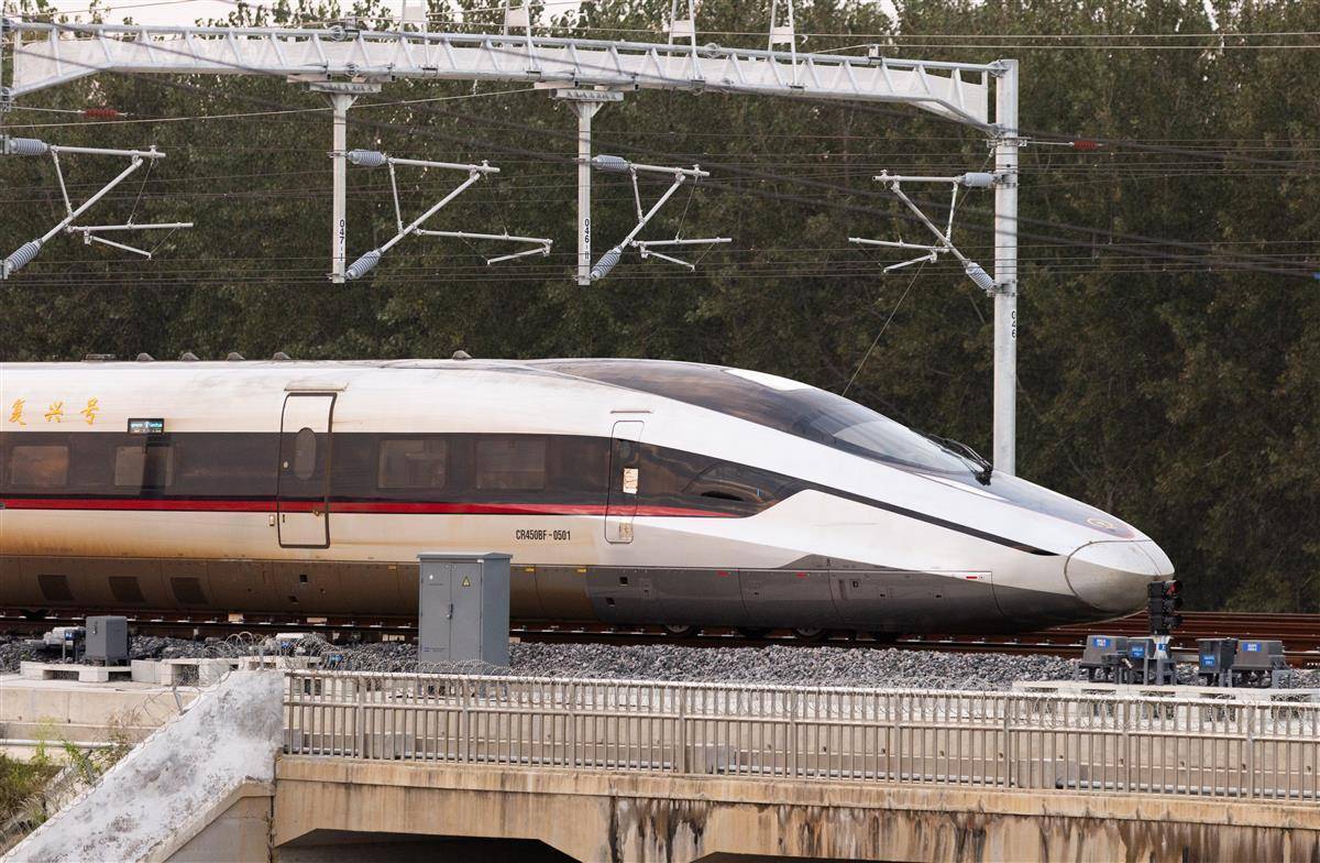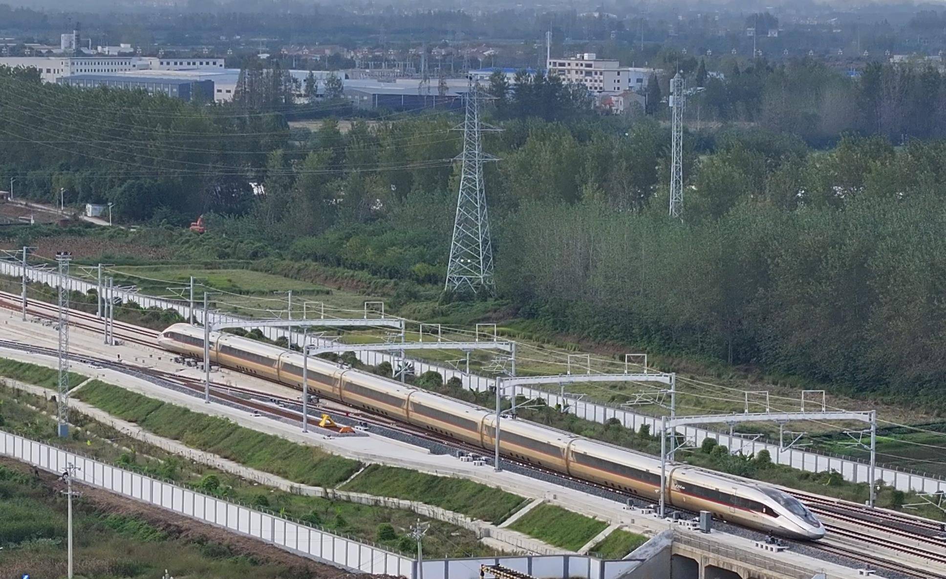 10月22日,全球最快高铁CR450动车组行驶在沪渝蓉高铁武汉至宜昌段。(湖北日报全媒记者 柯皓 摄)