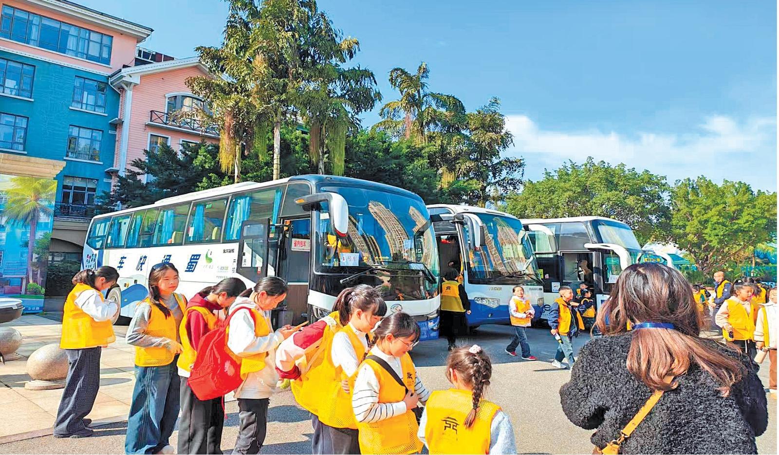 秋假期间,我市安排车辆为学生研学之旅提供贴心服务